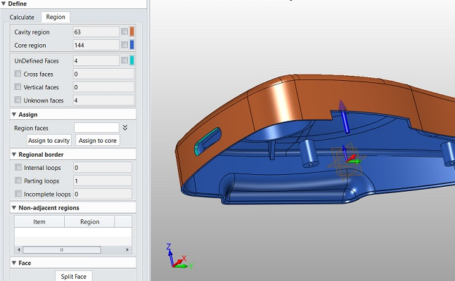การสร้าง Parting line สามารถทำได้ในรูปแบบอัตโนมัติหรือแบบกำหนดสร้างเอง และในรูปแบบการ Split ชิ้นงานสามารถทำได้อย่างรวดเร็วสามารถปรับเปลี่ยนรูปแบบได้ และรูปแบบการสร้าง Cavity รองรับการออกแบบ Single-Cavity และ Multi-Cavity