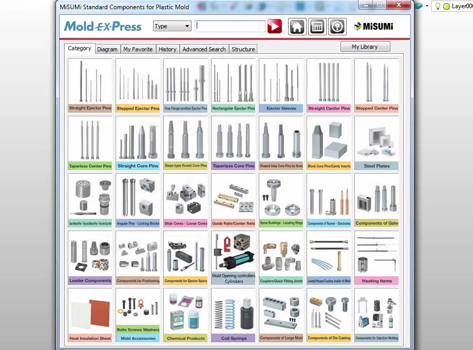 ในส่วนของ Mold Base และ Standard Parts เป็นชิ้นส่วนที่มาจากผู้ผลิตที่มีชื่อเสียง อาทิเช่น FUTABA, MISUMI, HASCO