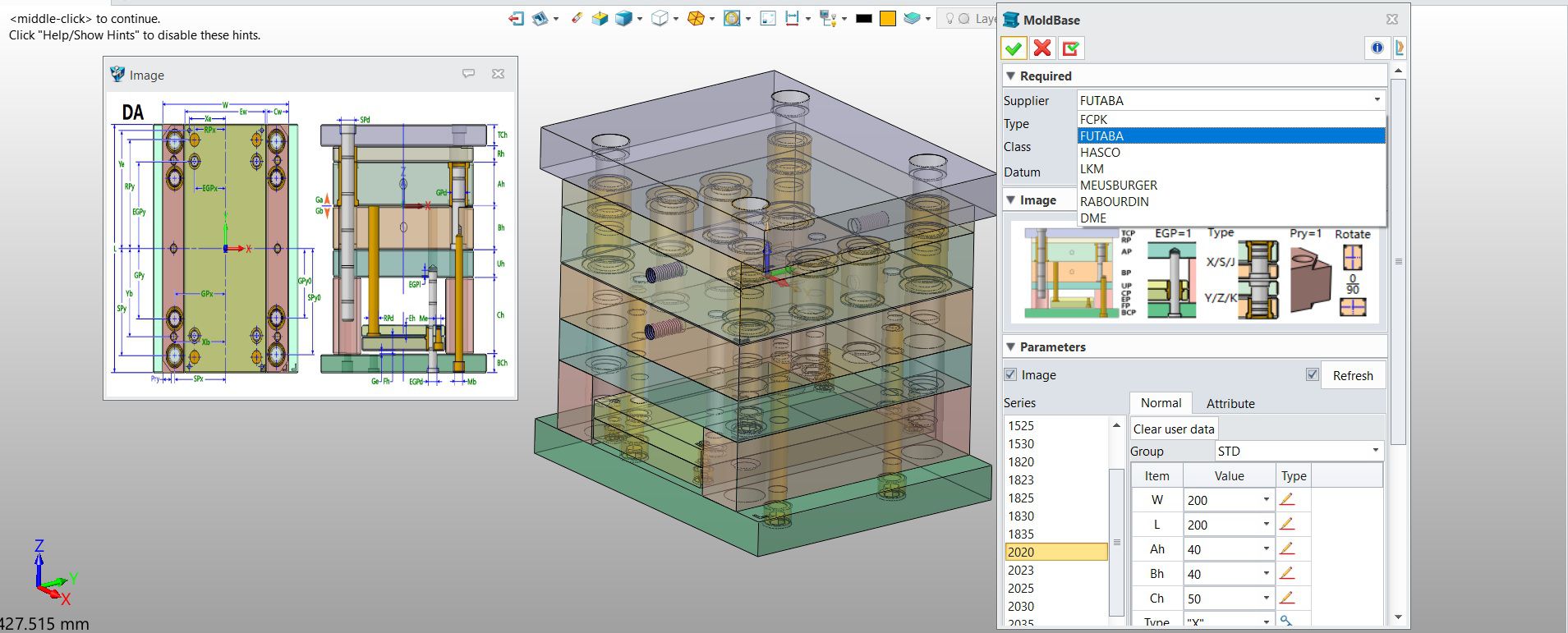 ZW3D รองรับ Mold bases และ Standard Parts ที่เป็นรูปแบบมาตรฐาน ช่วยให้การทำงานลดความผิดพลาดในการออกแบบ