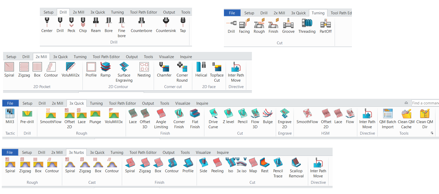 ZW3D รองรับการทำงานรูปแบบประเภทต่างๆ เช่น งานเจาะรู (Hole Making), งานกลึง (2X Turning), งานกัดในรูปแบบ 2 แกน (2 Axis) ถึง 5 แกน(5 Axis)