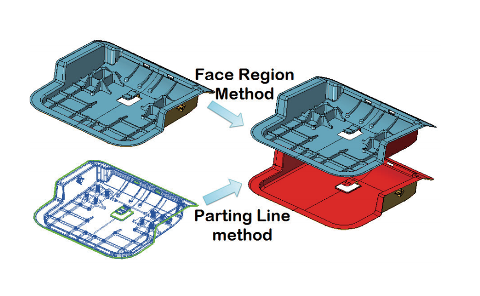 การสร้าง Parting line สามารถทำได้ในรูปแบบอัตโนมัติหรือแบบกำหนดสร้างเอง และในรูปแบบการ Split ชิ้นงานสามารถทำได้อย่างรวดเร็วสามารถปรับเปลี่ยนรูปแบบได้ และรูปแบบการสร้าง Cavity รองรับการออกแบบ Single-Cavity และ Multi-Cavity